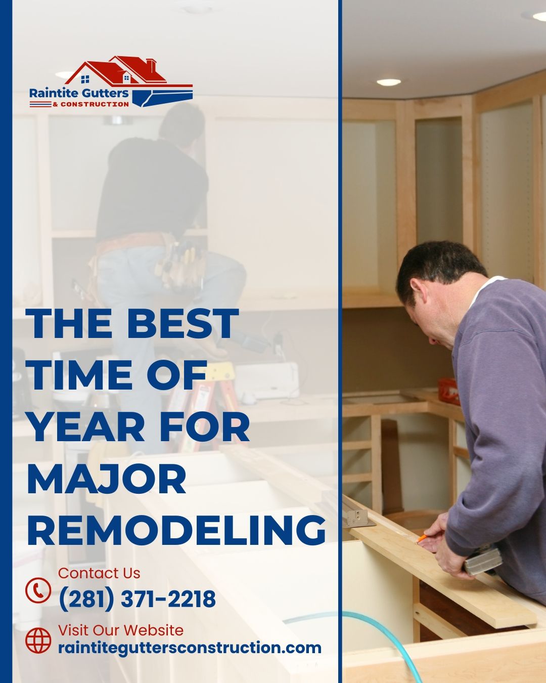 - Kitchen/Bath/Interior Remodels: Ideal in winter (for best availability) or during the shoulder seasons (for ideal drying conditions for drywall mud and paint).